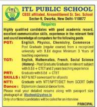 ITL Public School, Dwarka, New Delhi invites applications for TGT English, Maths, French, Social Science and Dance Teacher posts. Apply now for CBSE school teaching jobs in Delhi 2026.