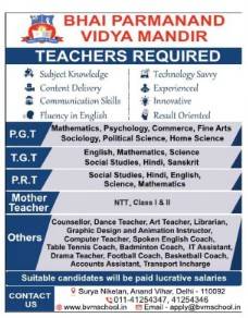 Bhai Parmanand Vidya Mandir invites applications from qualified, experienced, and tech-savvy educators with excellent communication skills and fluency in English. Candidates should possess strong subject knowledge, content delivery skills, and relevant orientation.