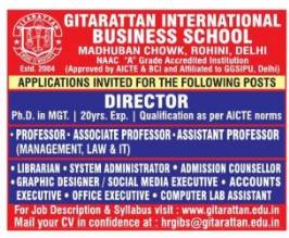 Gitarattan International Business School, Delhi Wanted Director and Faculty Positions