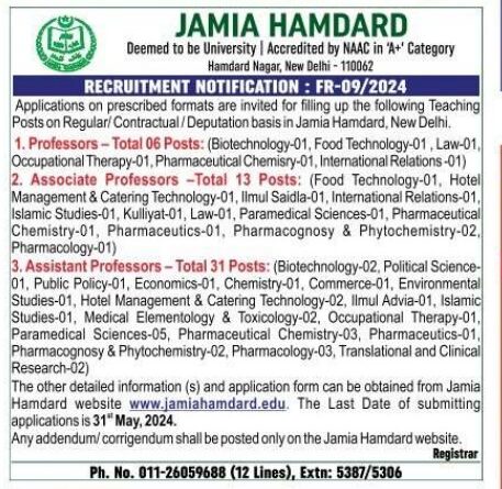 For Detailed Advertisement Visit: https://jamiahamdard.edu/