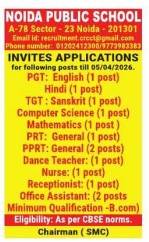Noida Public School Recruitment 2026 for PGT, TGT, PRT & Non-Teaching Staff