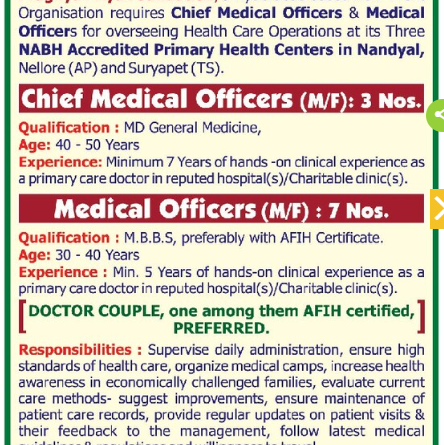 Qualification: M.B.B.S, preferably with AFIH Certificate.