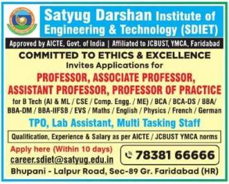 ๐ง career.sdiet@satyug.edu.in - Application Deadline: Within 10 days from the date of advertisement