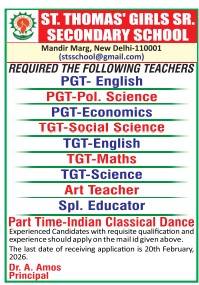 St. Thomas’ Girls Sr. Sec. School, Mandir Marg New Delhi invites applications for PGT English, Political Science, Economics, TGT Social Science, English, Maths, Science, Art Teacher, Special Educator and Dance Teacher posts 2026.