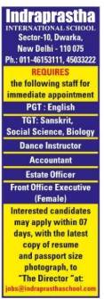 Apply for teaching and non-teaching jobs at Indraprastha International School, Dwarka. Vacancies for TGT, Dance Instructor, Accountant, and more.