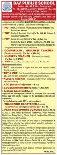 DAV Public School NTPC Vindhyachal invites applications for PGT, TGT, PRT, Counsellor, Nurse, and administrative staff positions. Apply as per CBSE norms.